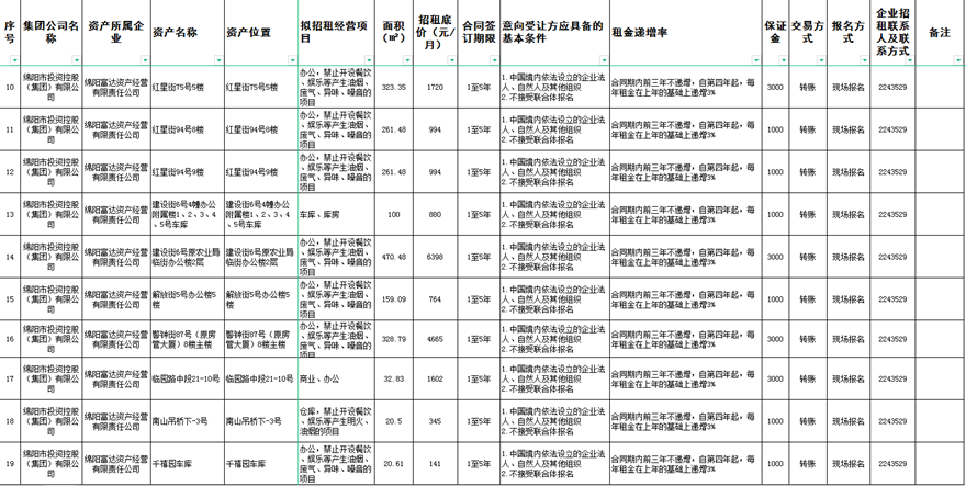 綿陽富達(dá)資產(chǎn)經(jīng)營有限責(zé)任公司資產(chǎn)出租公告
