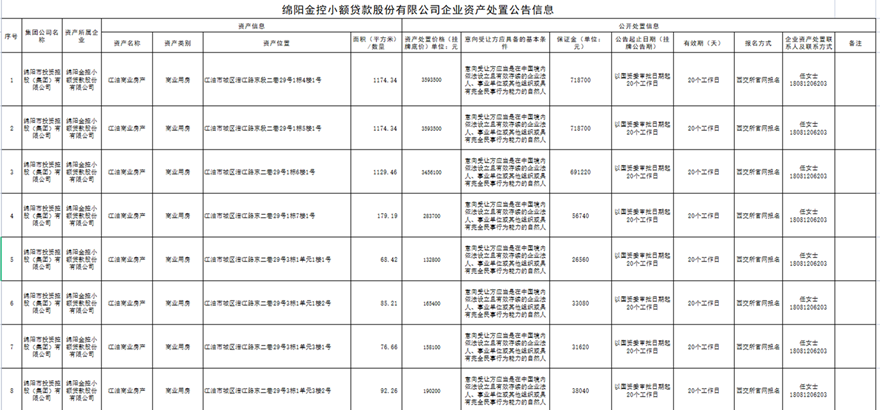 綿陽(yáng)金控小額貸款股份有限公司企業(yè)資產(chǎn)處置公告信息